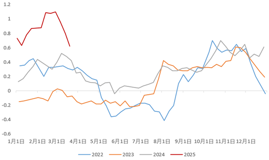 不同于往年出栏体重变化加剧猪价波动的情况,近两年体重变化明显起到了平抑行情波动的作用。春节后至今养殖端出栏体重处于连续上涨趋势,主要原因为肥标价差异常偏高导致肥猪较标猪有利可图,且从季节性来说,投机群体会在节后猪价低点介入育肥,双重影响下体重出现上行,但由于2025年猪价跌幅有限,抄底热情相对较低,猪价走势较为平稳。后续随着肥标价差不断走弱,以及气温不断升高肥猪需求回落,二季度面临大体重猪抛售的压力,但前面我们提到由于前期二育量相对较少,体重高位回落空间有限,二季度猪价下跌幅度或有限,我们对5月前猪价保持谨慎悲观的态度。